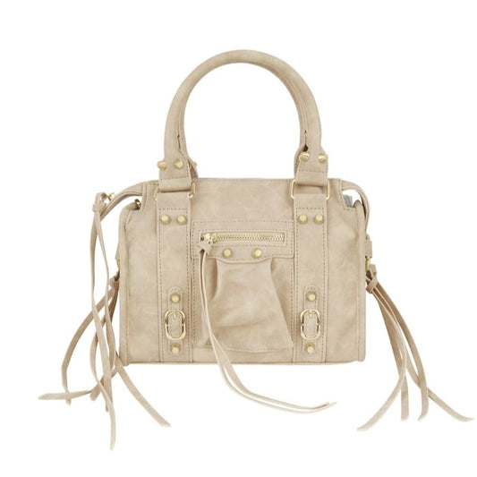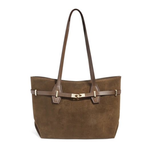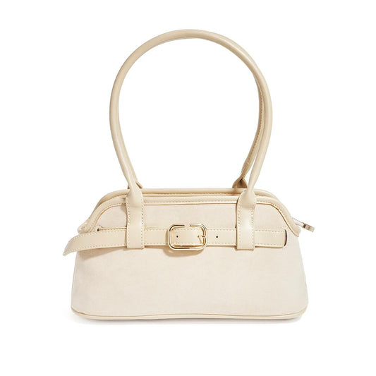 Borsa a mano dal design raffinato, realizzata in morbido effetto Suede. La silhouette compatta e strutturata è impreziosita da una cinturina con fibbia dorata, che dona carattere ed eleganza senza tempo. Perfetta per accompagnarti dal giorno alla sera, grazie ai manici comodi e alla chiusura con zip che garantisce praticità e sicurezza. Ideale per chi ama uno stile classico, femminile e versatile.